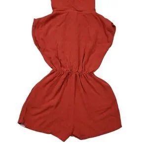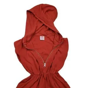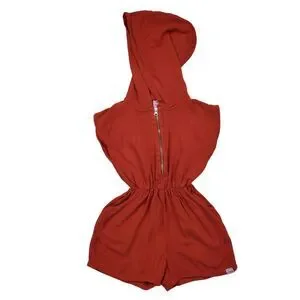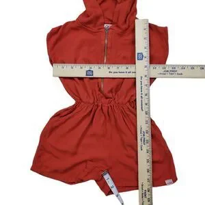Pencil 1987 Hooded Romper Shorts Girls 4 Orange Half Zip Sleeveless Kids