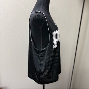 Stay stylish and comfortable with this black mesh tank top from PINK Victoria's Secret. Perfect for casual outings or workouts. PINK by Victoria’s Secret reversible athletic mesh tank top in size Large. Features bold “PINK” varsity graphic on black side and “Love Pink” crest on white side. Breathable, sporty fit with 20" bust and 25" length from shoulder to hem. Ideal for summer workouts, casual streetwear, or layering. Lightweight and versatile—2 looks in 1!