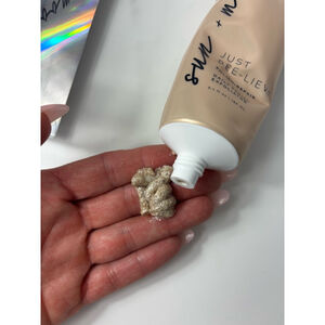 Sun + Moon x Just Bee-Lieve Polish + Repair Daily Facial Exfoliator, new with tags and in its original box. The tube is a metallic gold color and contains 5.1 fl oz (150 mL) of product. The box is clear plastic with holographic accents. The product is designed to gently exfoliate and brighten the skin. The box is sealed and shows no signs of damage.