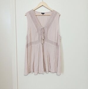 Torrid 3X Lace Up Sleeveless Tan Peasant Mushroom Babydoll Women's Top