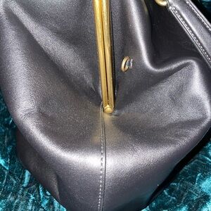 The oversized Coach Kisslock bag is in amazing condition. Two pin marks can be seen where bag was personalized. Bag comes with original shoulder strap and dust bag. No smell. Soft leather and holds a ton of items!