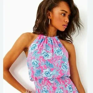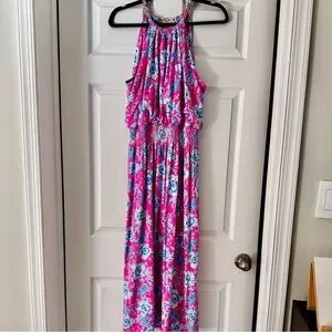 New Lilly Pulitzer Gracelyn Floral Halter Floral MIDI Dress NWOT Size Large