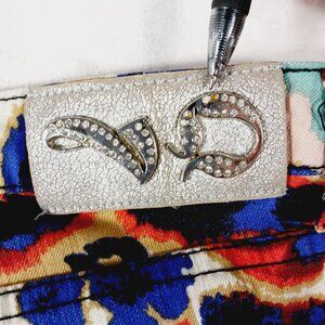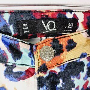 Virgin Only, Multi Colored Artsy Skinny Jeans, Size 29. 5 pocket style. Gemstones accent the pockets, and back waistband logo. Very good to excellent pre-owned condition. Only thing to mention is on the back VO label on the waistband, there are 2 missing stones (see last two photos). Very fun, vibrant pants. Festival, Boho, Hippie, Glam, Vibrant. The legs are very skinny, if you have larger calf's, this may not be the pair for you.