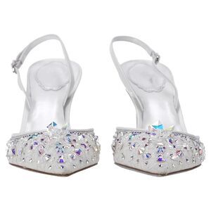 Pre Loved Rene Caovilla Vintage Crystal Embellished Slingback Heels Women white