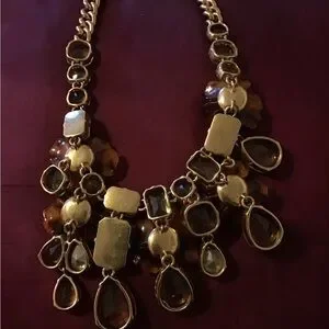 J CREW RARE FLOWER RHINESTONE GOLD TONE STATEMENT NECKLACE GUC