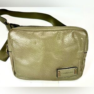 Calvin Klein Unisex Pebble Leather Fanny Bag in Olive