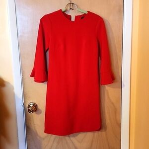 Ann Taylor beautiful red color and material dress with raffle sleeves size 0 worn once