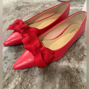 C.Paravano Red Pointy Bow Flats (Aida) Size 39 US 8.5