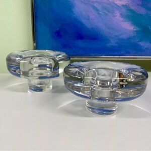 Set of 2 Dansk International Designs Ltd. IHQ / Japan Full Lead Crystal Glass mushroom shaped votive or taper candle holders.