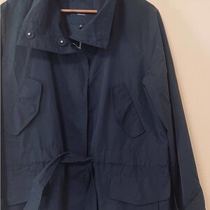Classic black lightweight anorak jacket from Talbots. Fully lined. Front snap pockets. Zip front. Sleeves have snaps to tighten around wrists. Drawstring at waist to cinch in. This is a really nice all-weather coat! Size M but will fit a L as well.