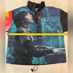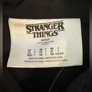 NWT: new, clean, excellent condition. Rare Stranger Things Netflix Will Byers in the Upside down Bomber Jacket. Comfortable as it is slightly oversized size Small. Pull elastic bottom and elastic cuffs.