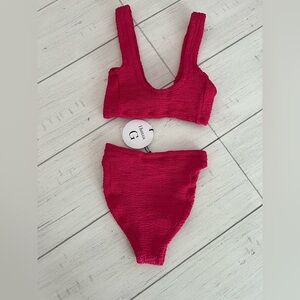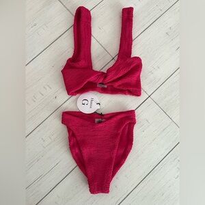 Hunza G Juno Two Piece Crinkle Bikini Swim Set Raspberry Pink NWT OS