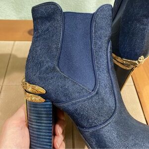 TORY BURCH 9 Theodora Gold Dragonfly Blue Calf Hair Ankle Bootie Boots Heels Used once great condition real fur size 7