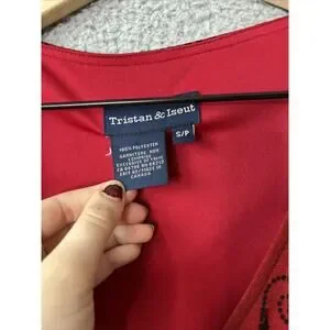 Tristan & Iseut Wrap Dress Small Petite Belted Surplice Lettuce Ruffle 70s Y2K