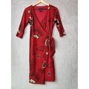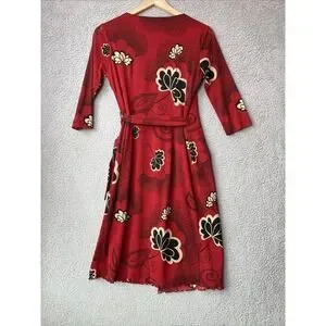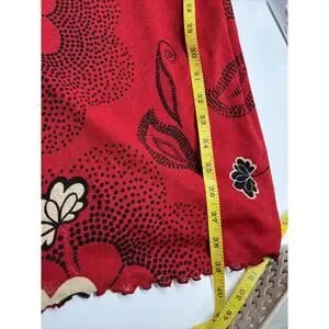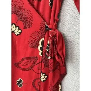 Tristan & Iseut Wrap Dress Small Knee Japanese Floral Red Ruffle Retro 70s Y2K