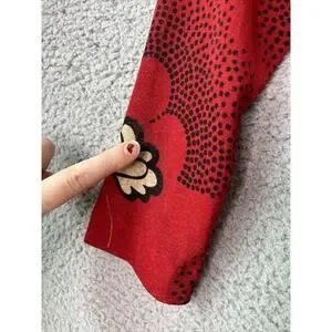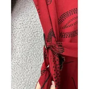 90s knee length midi retro red black oriental waist tie belted v neck artsy eclectic weird core lounge leisure colorful lightweight hippie beach coastal floral