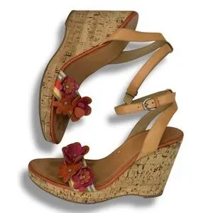 COACH Morgan Strappy Cork Wedges Heels Size 6.5 Floral Shoes