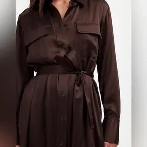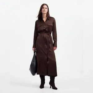 Madewell 100% Silk Chocolate brown Midi Statement Shirtdress