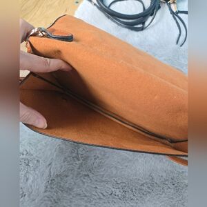Elevate your style with this chic tan studded leather/ suede bag. Perfect for any occasion, it combines fashion and functionality.