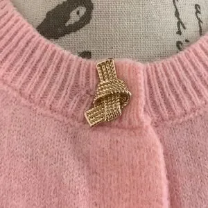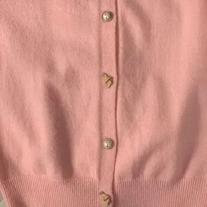 NEW Elegant Decorative Gold and Pearl Button Front Cardigan Sweater Light Pink S
