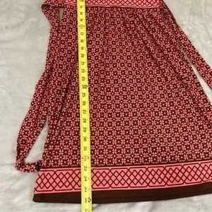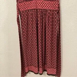 This elegant dress features a striking geometric pattern in a beautiful red hue. Perfect for any occasion, it combines style and comfort effortlessly.