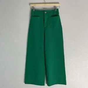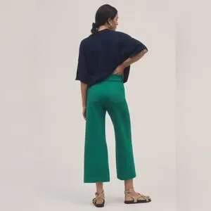 Anthropologie Maeve Colette Cropped Wide Leg Pants Kelly Green Knit Edition 25