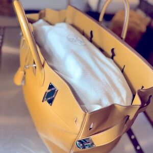 Hermes. HAC 50 (Haut à courroies) Togo leather caramel. Palladium hardware.