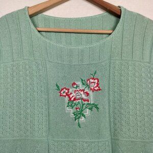 Vintage Sweater Small Sleeveless Mint Green Embroidered Flowers Grannycore