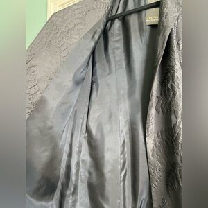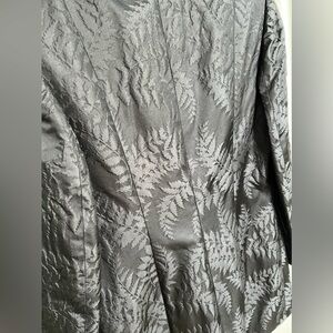 Dana Buchman's embossed silk coat features a sophisticated fern pattern, made of high-quality silk blend. Perfect for versatile styling.