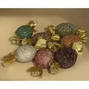 VTG Beaded Candy Pieces Faux Sugared W/ Gold Wrapper MCM Lot of 14 RARE.