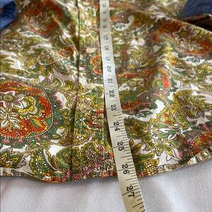 Elevate your style with the Talbots Cotton Floral Shirt. Featuring a vibrant multicolor design, this shirt is perfect for any occasion. Enjoy the comfort and elegance of Talbots. Size tag cut out, but measures and fits like a large. Measurements included in photos. Button sleeves to quarter length. Cute denim look details. 100% cotton. Fast shipping.
