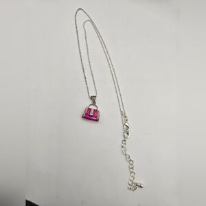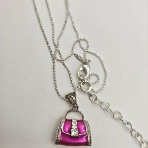 This Avon purse pendant necklace features a .75" L x .6"W red purse charm on a 17" L silver with chain that has a 3" extender chain to make it longer. It is marked Avon on a hang tag near the closure.