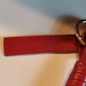 Add a touch of sophistication to your accessories with this elegant leather tassel keychain. The rich red color complements any style, 9" by 2", used condition
