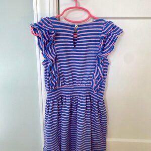 J. Crew Crewcuts Pink and Blue Striped Ruffle Dress Size 4 Girls