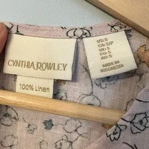 This charming pink 100% linen dress (or tunic) by Cynthia Rowley features a whimsical floral pattern. It is size small and in excellent condition. See photos for measurements.