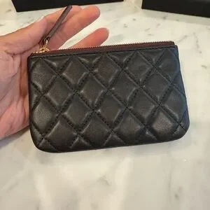 Elegant and timeless, this Chanel black quilted leather pouch is perfect for carrying your essentials in style. Featuring the iconic Chanel logo, it's a must-have accessory for any fashion enthusiast. Please don’t state the obvious. This is an exact copy and very high quality. Real leather. Made in China. Comes with branded box and dust bag.