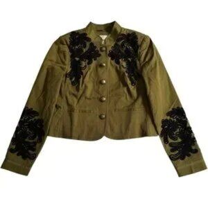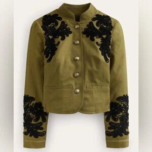 Boden Warwick Embroidered Jacket Blazer Sz 6 Olive Green Casual Cotton Utility
