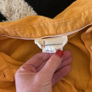 By Anthropologie mango colored button front duster tunic shirt in size small. Made with 100% Cotton Measurement: 38” (length)