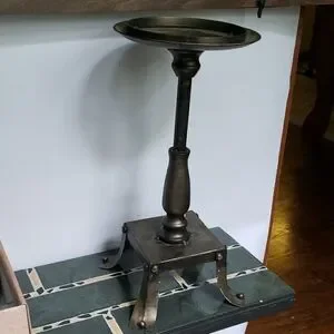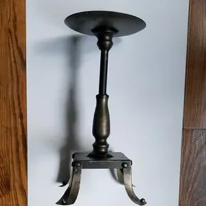 Rustic forged 12in pillar candle holder 4 1/2in ~ 6in total diameter
