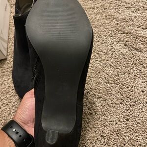 Elevate your style with these sleek black heeled boots from Style & Co. Crafted with a luxurious suede-like texture, these boots offer a sophisticated touch to any outfit. Perfect for adding a chic edge to your ensemble, they feature a high heel for an elegant silhouette.