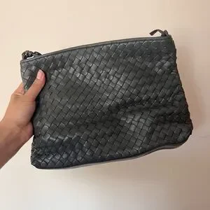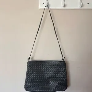 This stylish black woven shoulder bag is perfect for any occasion. Its sleek design and versatile color make it a must-have accessory.