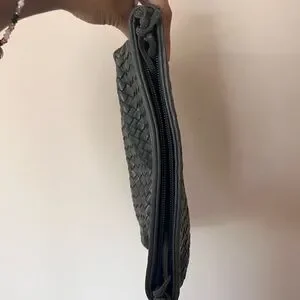 Elegant Gray Woven Leather Shoulder Bag Vintage Meyers made in USA