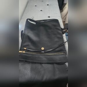 Stylish and functional, this backpack is crafted from durable nylon and faux leather features zip and slip pocket for easy organizing. Supple leather brass-finished and gold hardware completes the look. 15Lx11.5Wx4D