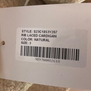 New with Tags! Lauren Manoogian Rib Laced Cardigan in Natural, Size Large