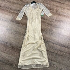 NEW Vintage Stenay Maxi Dress 10 Cream Sheer Beaded Fairy Back Split Zip Y2K Rayon Evening Wedding Gown