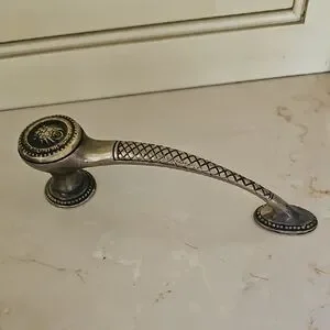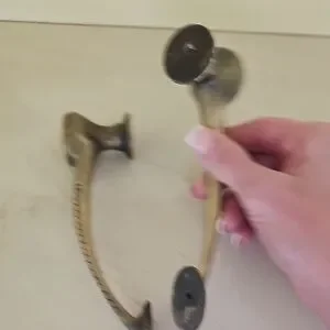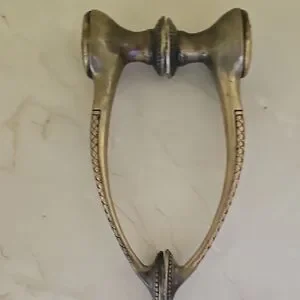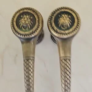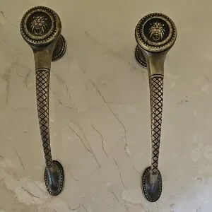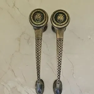 Elegant drawer pulls featuring a lion head design. Perfect for adding a touch of sophistication to furniture. The pulls have a classic black and gold color scheme.