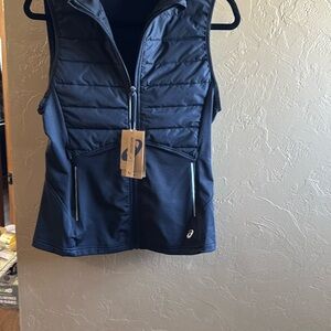 Stylish Asics vest with reflective accents. Easy zip closure.