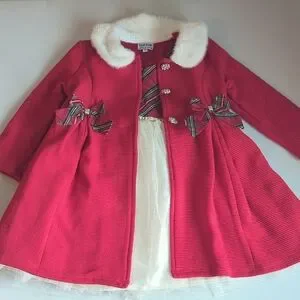 Charming red coat with a cozy faux fur collar And matching dress. Perfect for keeping your little one warm and stylish during the Christmas holiday.