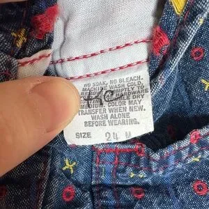 Adorable VINTAGE OshKosh B'gosh denim overalls in blue with red X&O accents. Perfect for playful days!!