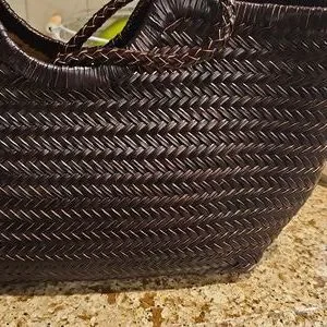 Nwt Split Leather Woven Bag